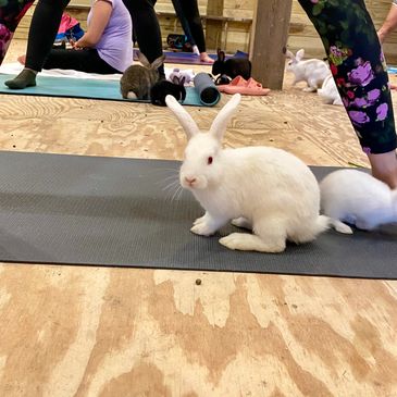 -45 minutes of beginner- friendly yoga with bunnies roaming freely, upstairs in a private temperature controlled party room
